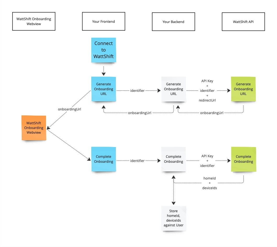 WattShift offers two ways to onboard users:- User Interface Based Onboarding (documented on this page): Redirect users to WattShift’s onboarding flow where they complete the process through our user interface.